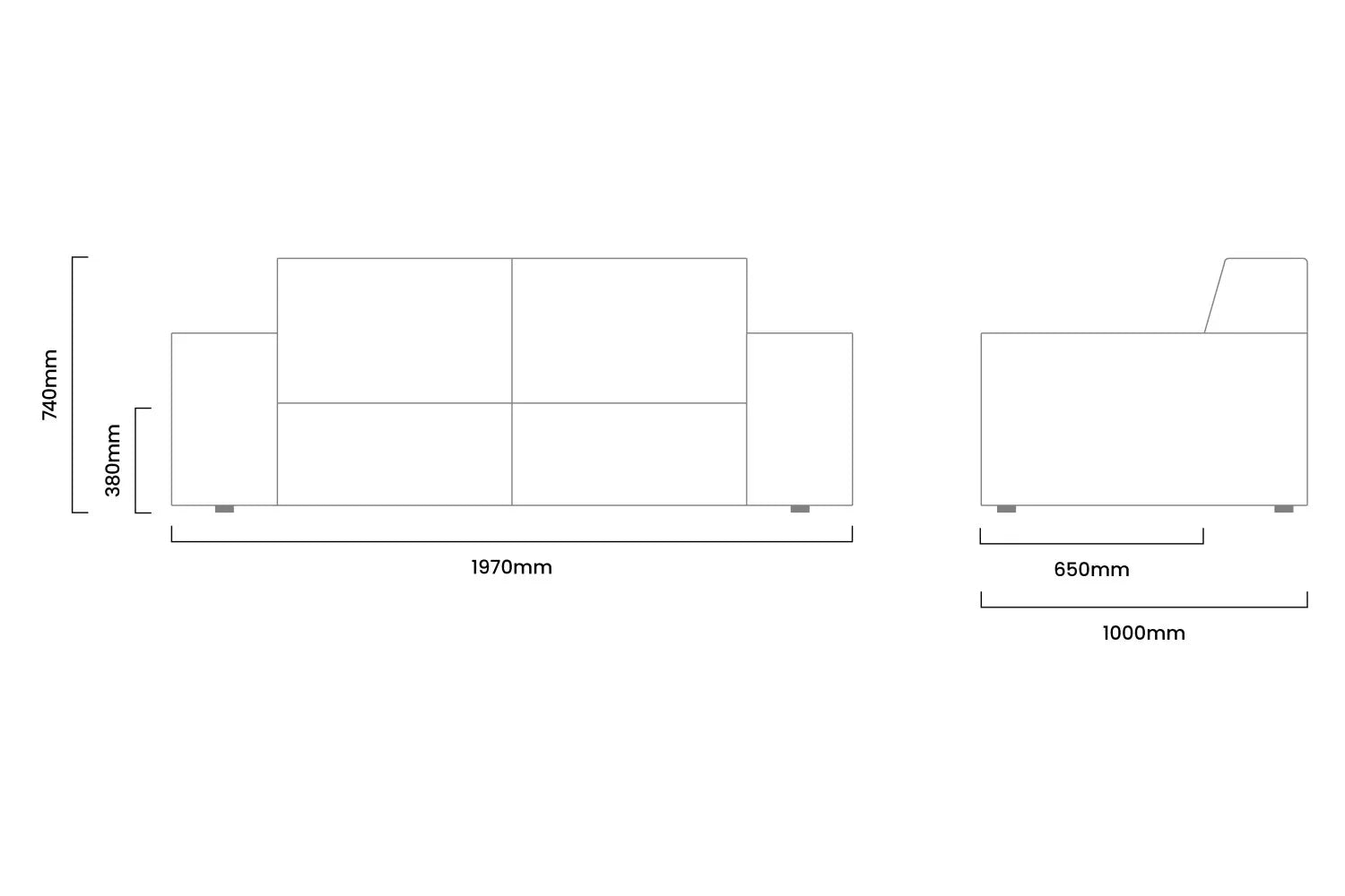 Estructura elaborada artesanalmente en madera reforestada. Espuma de alta densidad y guata ajustadas para brindar un soporte cómodo. Tapizado en material resistente, fácil de cuidar. Patas promedio que elevan el mueble sobre el nivel del suelo.